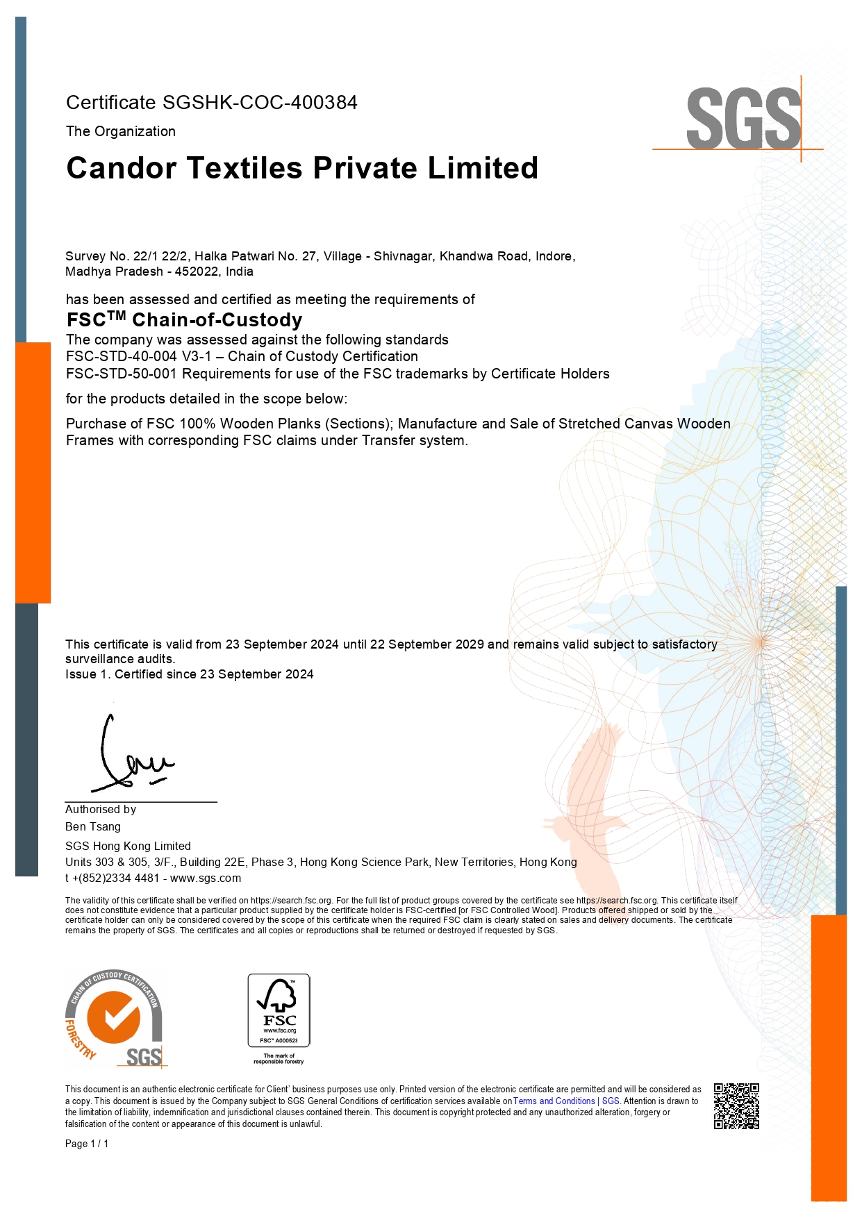 SGS certification is a globally recognized assurance that a company meets international standards for quality, compliance, and sustainability. Candor has been assessed and certified under SGS to demonstrate its commitment to maintaining verified processes, responsible sourcing, and consistent product quality.